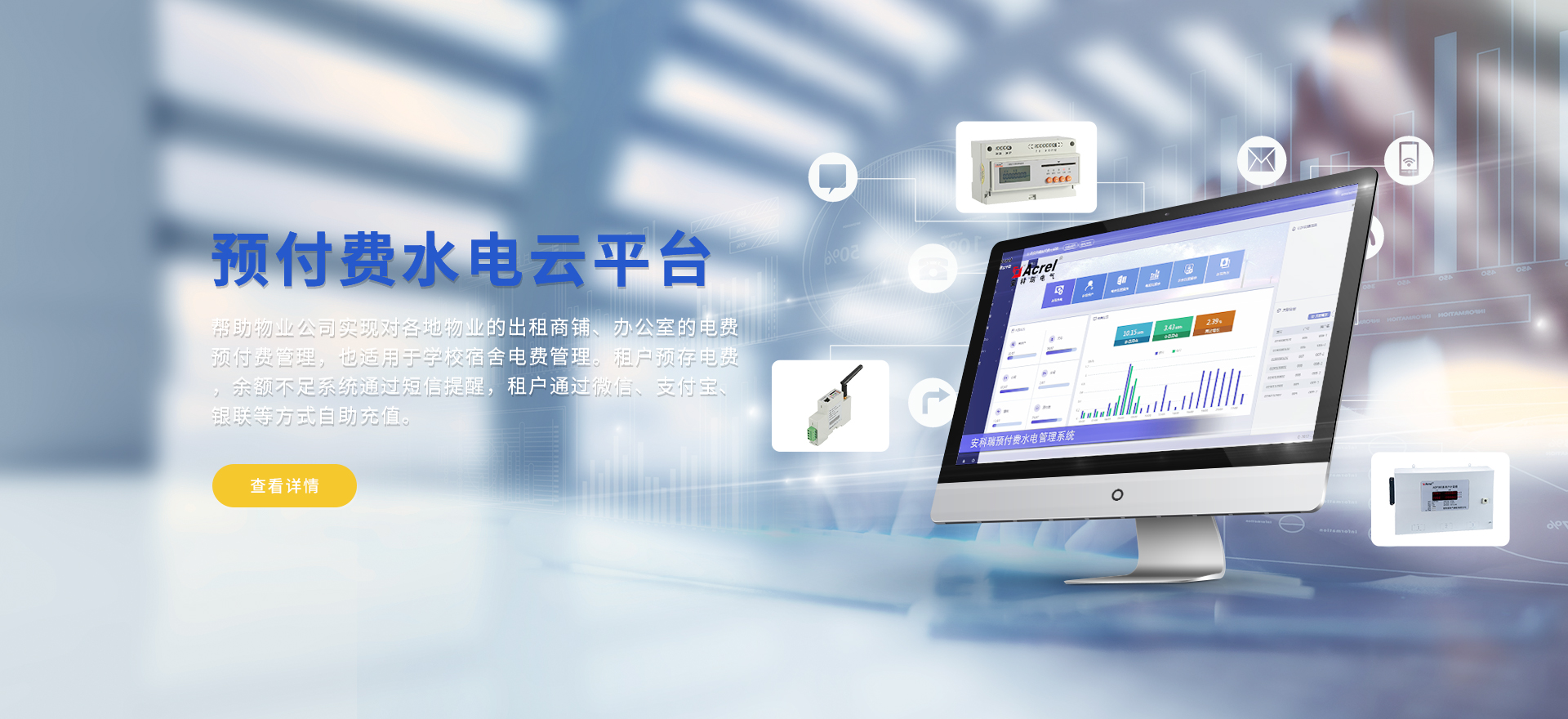安科瑞提供的解決方案包括Acrel-EIoT能源物聯網云平臺、變電所運維云平臺安全用電管理云平臺、環保用電監管云平臺、智慧消防云平臺能源管理云平臺、工業企業能源管控平臺、遠程預付費云平臺餐飲油煙監管云平臺、電動汽車/電瓶車充電樁收費管理云平臺、電力監控/無線測溫系統、電能質量治理系統、電氣火災監控系統、消防設備電源監控系統、防火門監控系統、應急照明和疏散指示系統、智能照明控制系統、醫用隔離電源絕緣監測系統等,幫助用戶實現能源智能化、可視化、精細化管理,提高用能效率和用能安全,為企業節能降耗和實現能源數字化建設提供數據服務。
